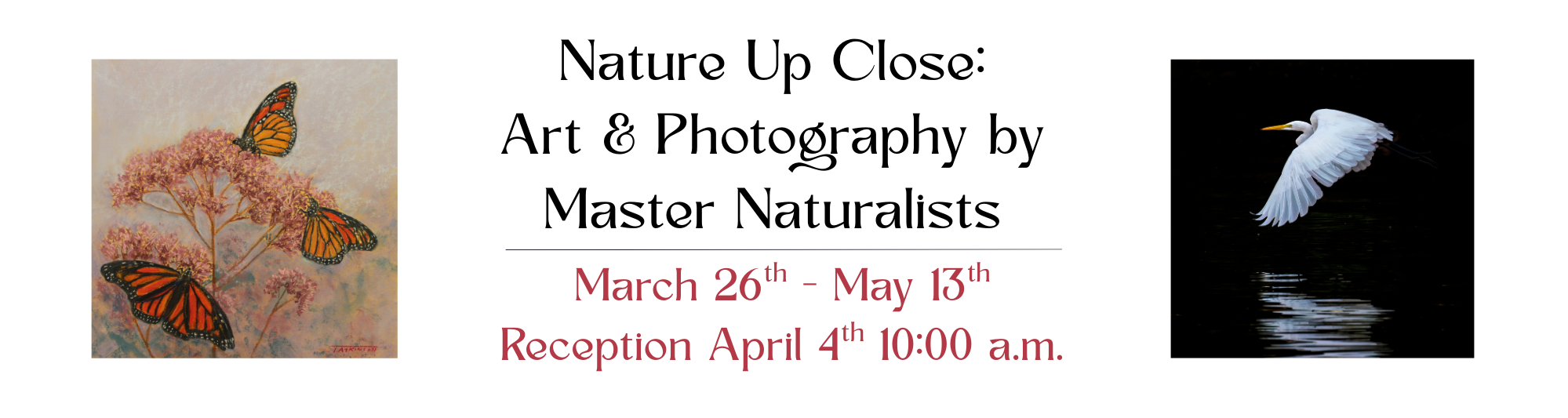 Join us for the Master Naturalist Art Reception on Saturday, April 4th at The Montpelier Center for Arts & Education. This special event will celebrate the beauty of nature through art while offering guests the opportunity to learn more through a series of educational tabletop presentations and speaker features.